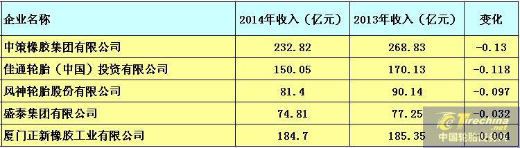 中國輪胎企業 2015收入排行榜